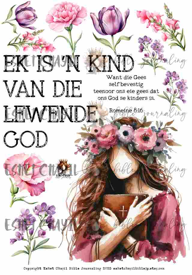 #BEVESTIGING 1 - Ek is ’n kind van die lewende God – Romeine 8:16 - Bible Journaling Printable