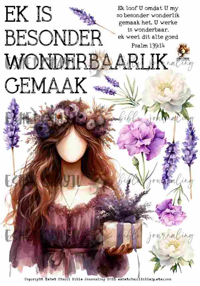#BEVESTIGING 3 - Ek is besonder wonderbaarlik gemaak – Psalm 139:14 - Bible Journaling Printable