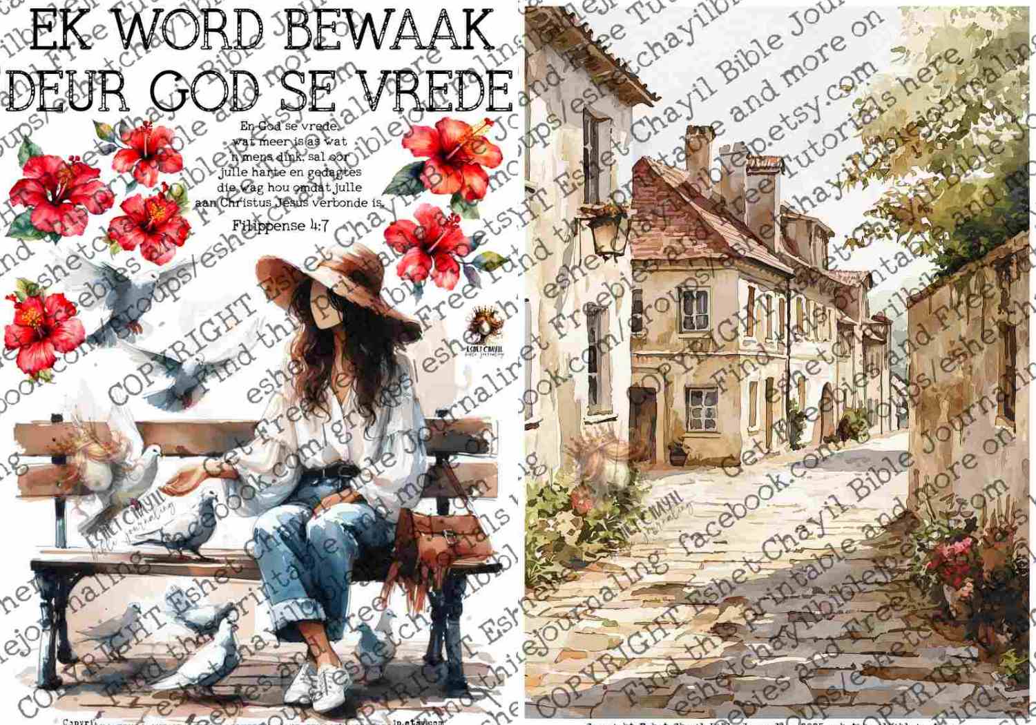 #BEVESTIGING 49 - Ek word bewaak deur God se vrede - Filippense 4:7 - Bible Journaling Printable