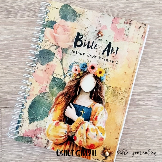 This Bible Art Cutout Book in English - consists a glossy hard cover , spiral bound with white wire binding, with 84, 160gsm pages printed in full colour. Perfect for bible journaling or faith journaling with my Bible Art Journals