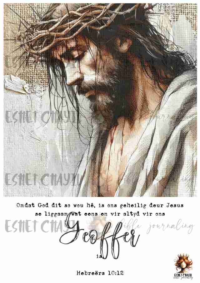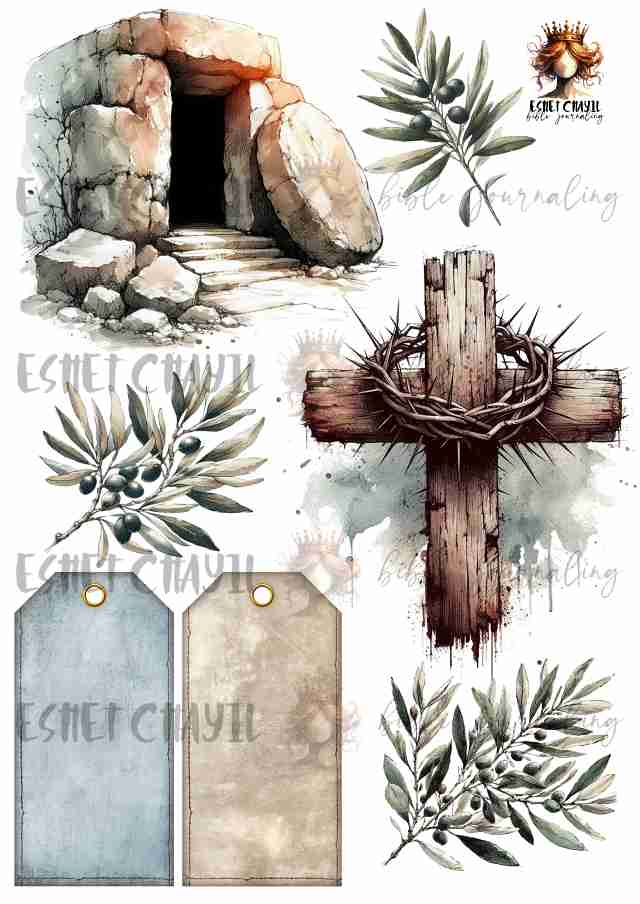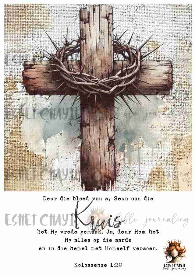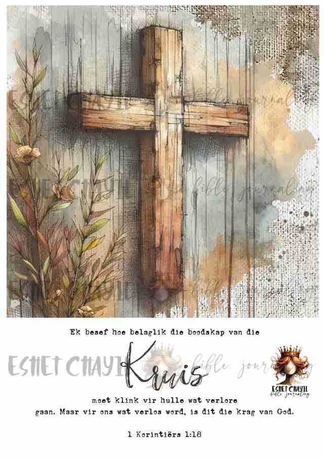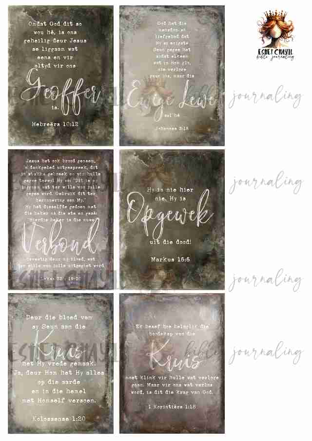 This bible journaling printable consists of a 10 page pdf and can be printed up to A4 sized at 300dpi. Perfect for bible journaling in a journaling bible or my Lent journal: https://eshetchayil.myshopify.com/products/bible-art-journal-lent-afrikaans