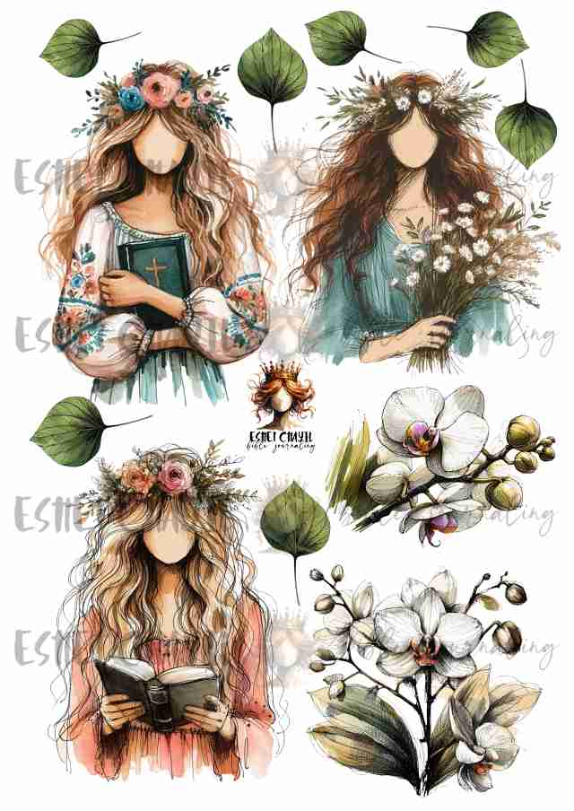 - 25 Pages of full colour sketches to cut out (including 16 of my beautiful faceless woman, and lots of floral and botanical sketches, birds, bugs and bunnies)