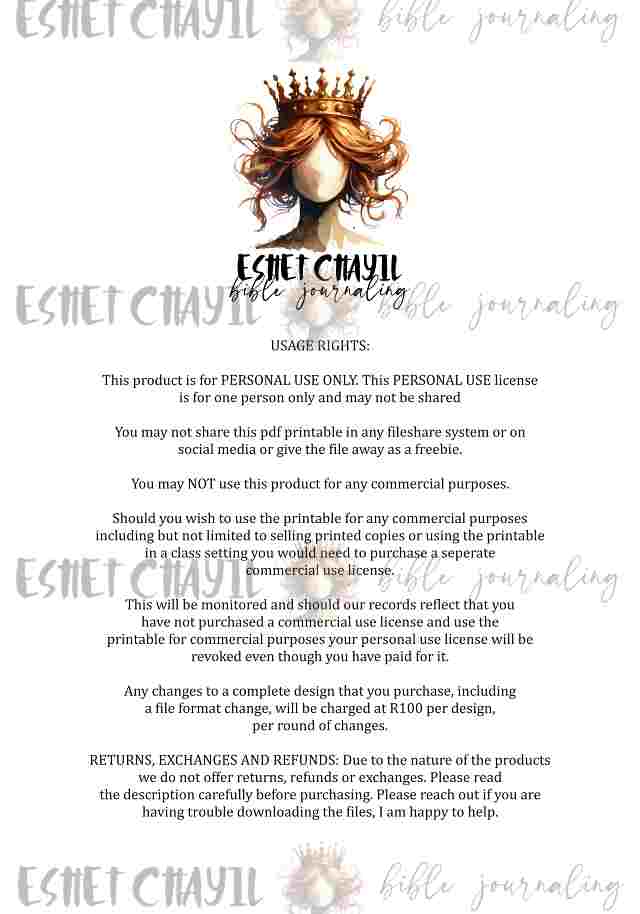 This bible journaling printable consists of a 3 page pdf and can be printed up to A4 sized at 300dpi. Perfect for bible journaling in a journaling bible or using in your Scrapbooking or Junk Journaling projects.