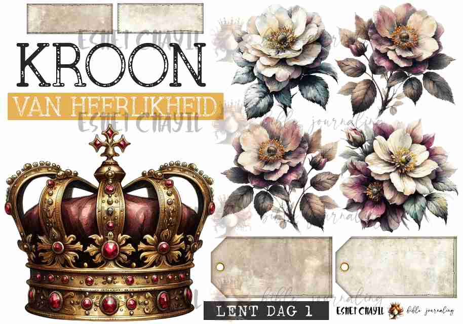This bible journaling printable consists of a 2 page pdf and can be printed up to A4 sized at 300dpi. Perfect for bible journaling in a journaling bible or my Lent journal: https://eshetchayil.myshopify.com/products/bible-art-journal-lent-afrikaans