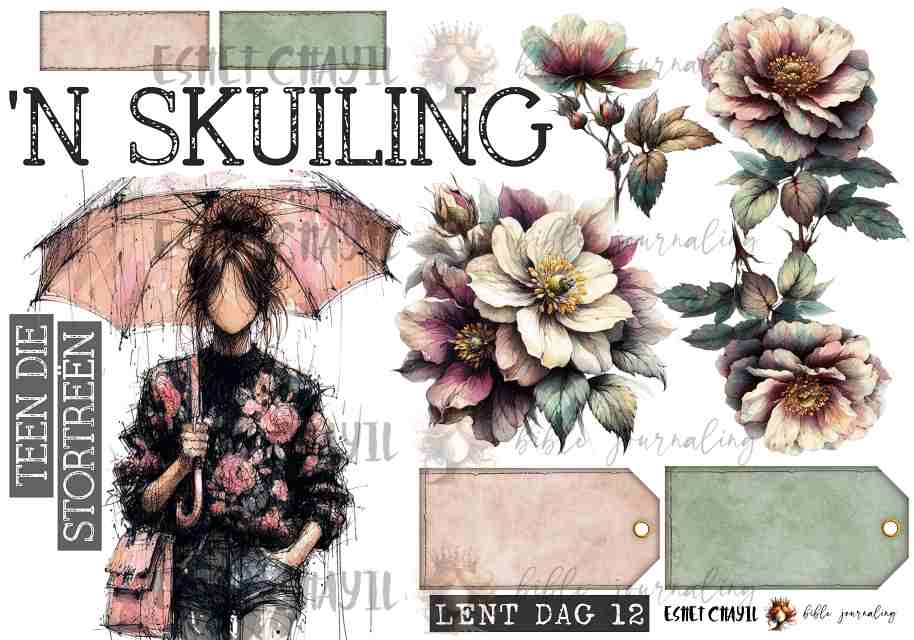 This bible journaling printable consists of a 2 page pdf and can be printed up to A4 sized at 300dpi. Perfect for bible journaling in a journaling bible or my Lent journal: https://eshetchayil.myshopify.com/products/bible-art-journal-lent-afrikaans