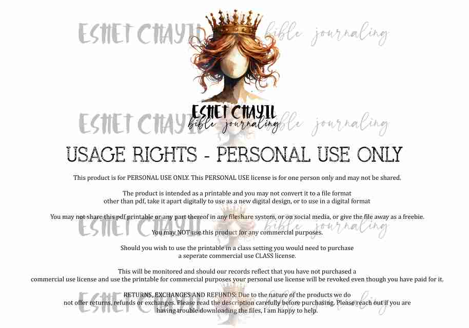 This bible journaling printable consists of a 2 page pdf and can be printed up to A4 sized at 300dpi. Perfect for bible journaling in a journaling bible or my lent journal: https://eshetchayil.myshopify.com/products/bible-art-journal-journal-english