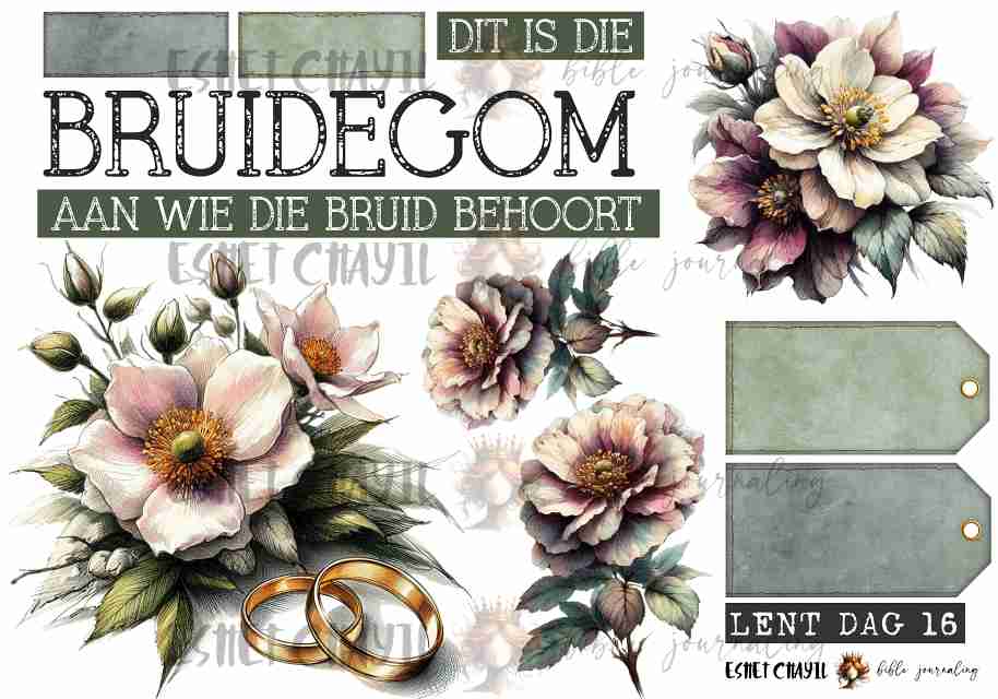 This bible journaling printable consists of a 2 page pdf and can be printed up to A4 sized at 300dpi. Perfect for bible journaling in a journaling bible or my Lent journal: https://eshetchayil.myshopify.com/products/bible-art-journal-lent-afrikaans