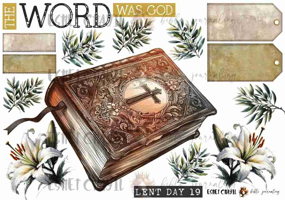 This bible journaling printable consists of a 2 page pdf and can be printed up to A4 sized at 300dpi. Perfect for bible journaling in a journaling bible or my lent journal: https://eshetchayil.myshopify.com/products/bible-art-journal-journal-english