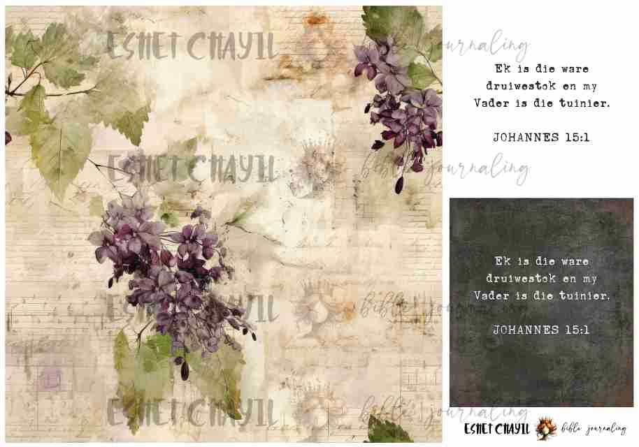 This bible journaling printable consists of a 2 page pdf and can be printed up to A4 sized at 300dpi. Perfect for bible journaling in a journaling bible or my Lent journal: https://eshetchayil.myshopify.com/products/bible-art-journal-lent-afrikaans