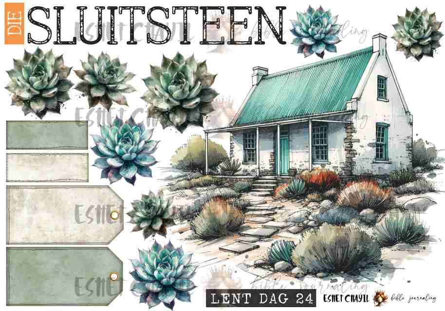 This bible journaling printable consists of a 2 page pdf and can be printed up to A4 sized at 300dpi. Perfect for bible journaling in a journaling bible or my Lent journal: https://eshetchayil.myshopify.com/products/bible-art-journal-lent-afrikaans