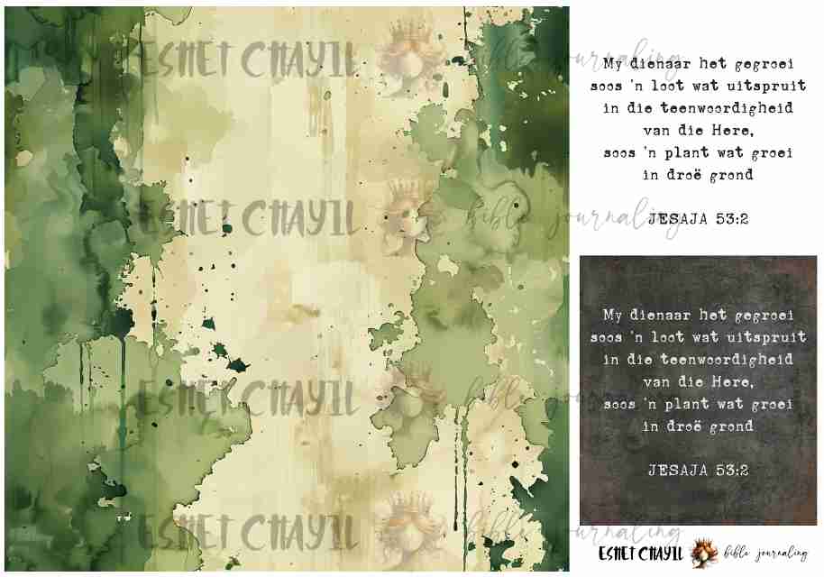 This bible journaling printable consists of a 2 page pdf and can be printed up to A4 sized at 300dpi. Perfect for bible journaling in a journaling bible or my Lent journal: https://eshetchayil.myshopify.com/products/bible-art-journal-lent-afrikaans