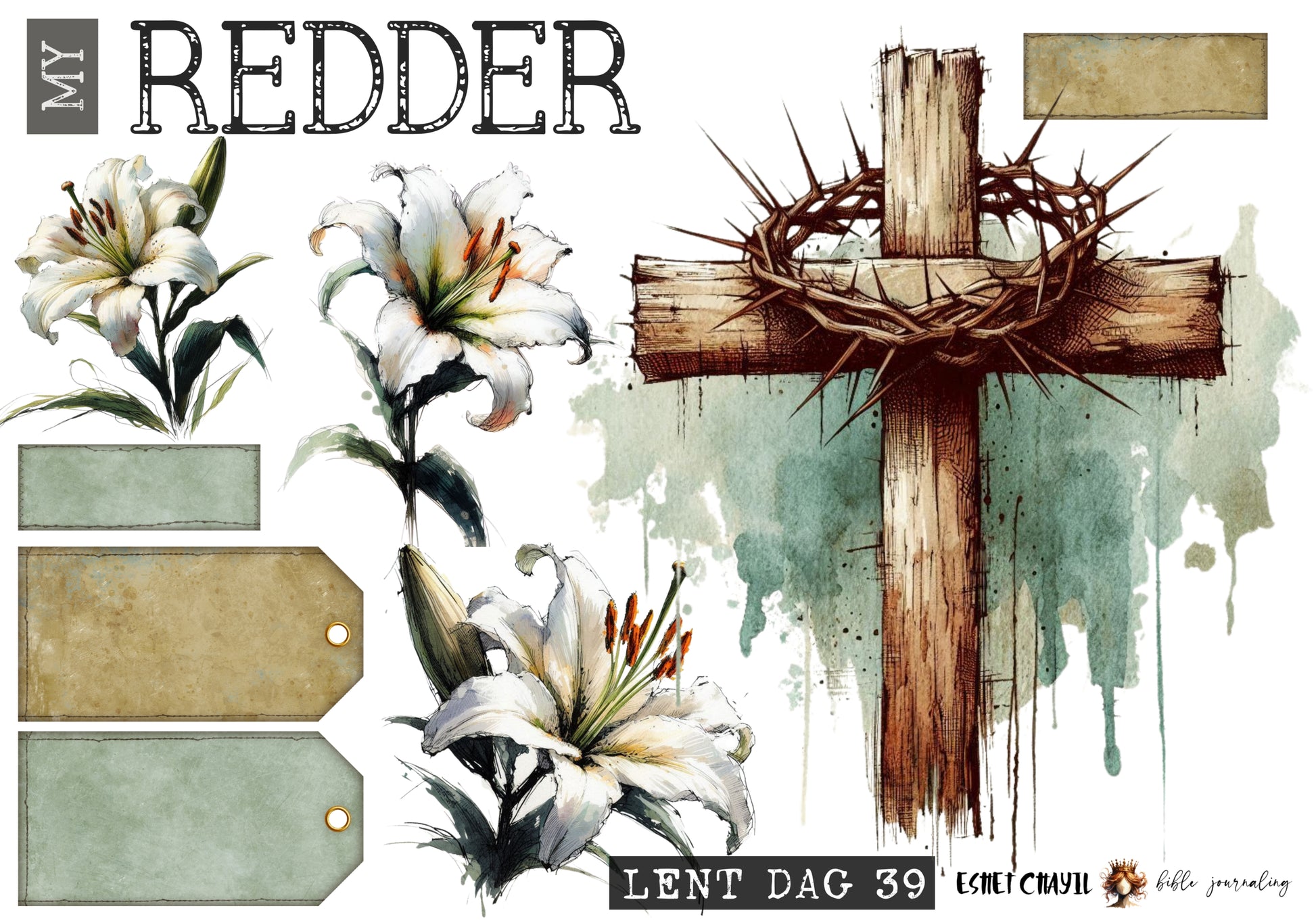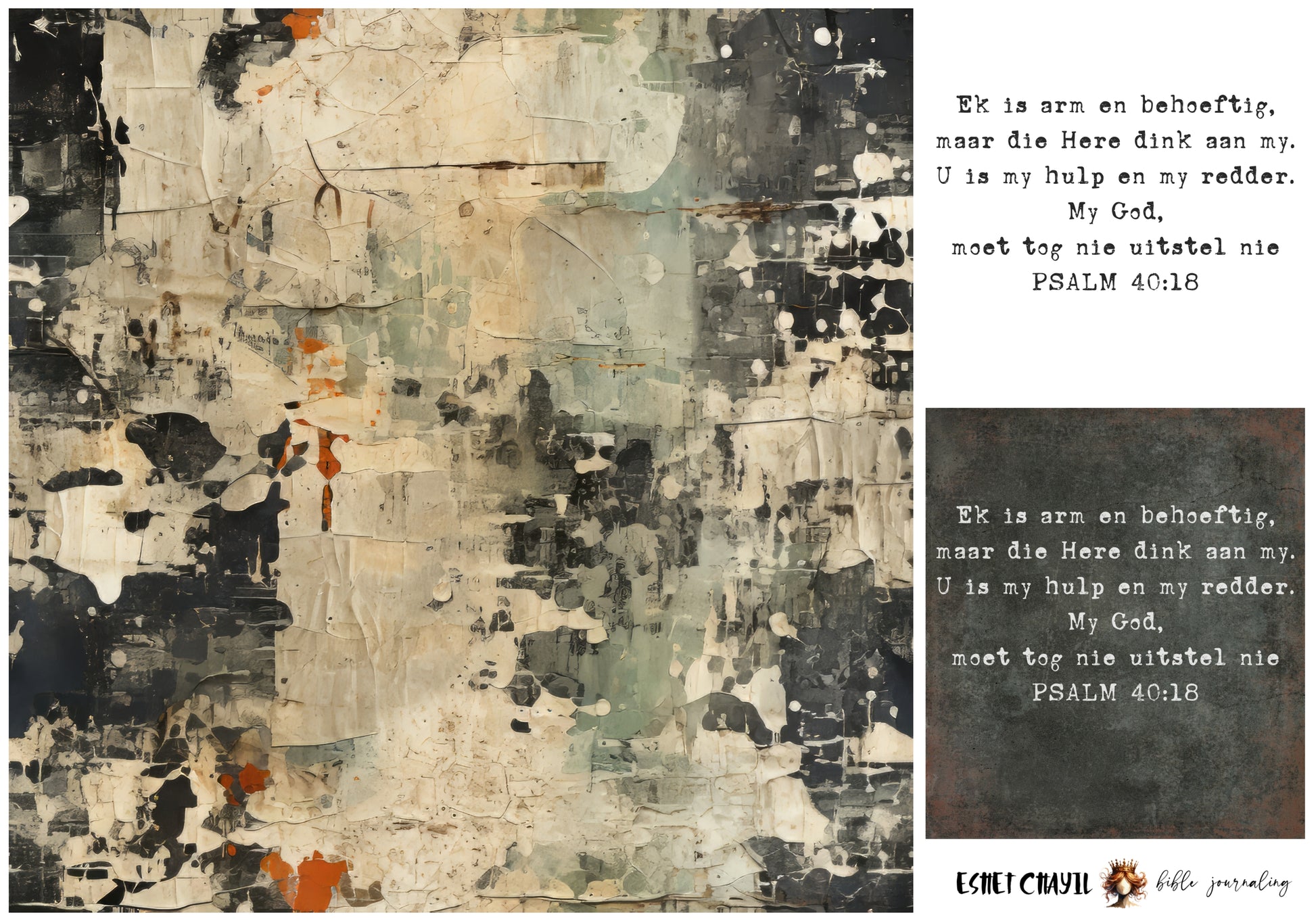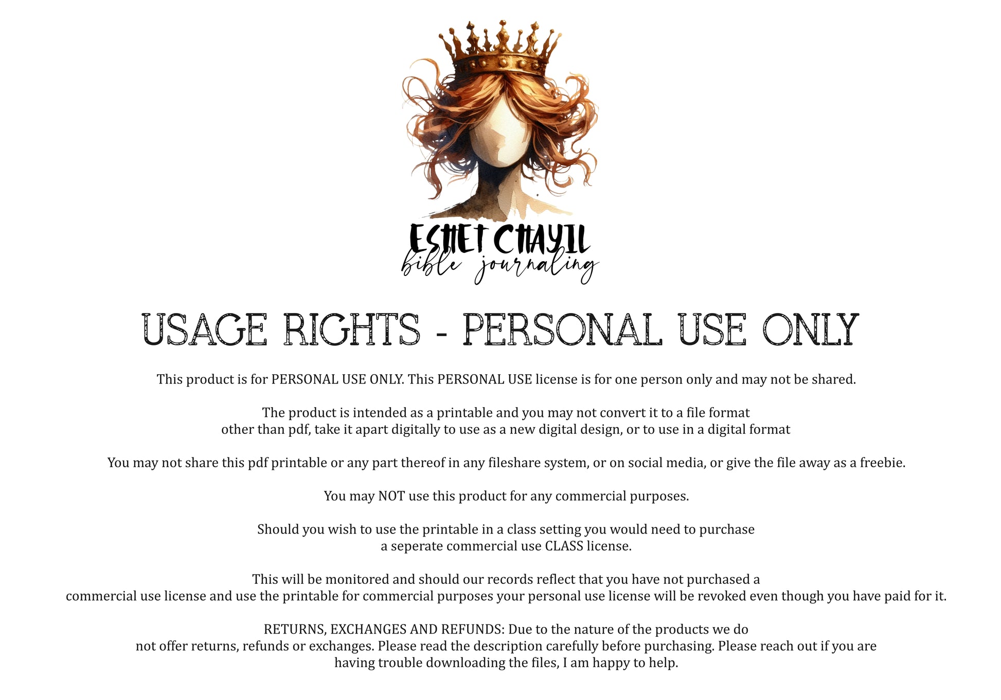 This bible journaling printable consists of a 2 page pdf and can be printed up to A4 sized at 300dpi. Perfect for bible journaling in a journaling bible or my Lent journal: https://eshetchayil.myshopify.com/products/bible-art-journal-lent-afrikaans