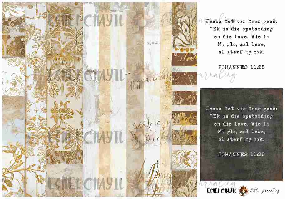 This bible journaling printable consists of a 2 page pdf and can be printed up to A4 sized at 300dpi. Perfect for bible journaling in a journaling bible or my Lent journal: https://eshetchayil.myshopify.com/products/bible-art-journal-lent-afrikaans