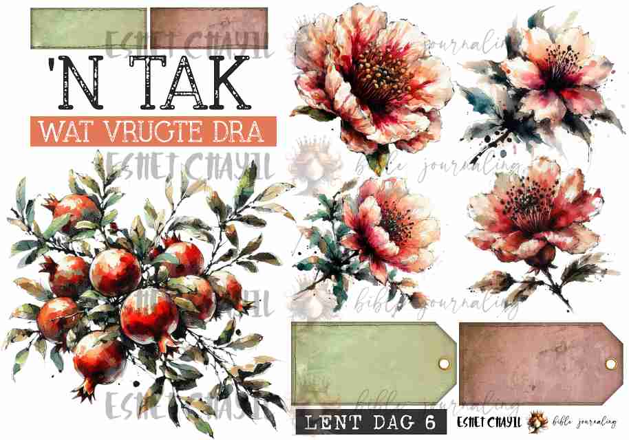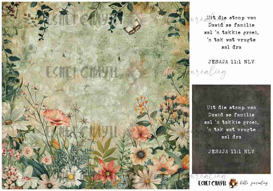This bible journaling printable consists of a 2 page pdf and can be printed up to A4 sized at 300dpi. Perfect for bible journaling in a journaling bible or my Lent journal: https://eshetchayil.myshopify.com/products/bible-art-journal-lent-afrikaans