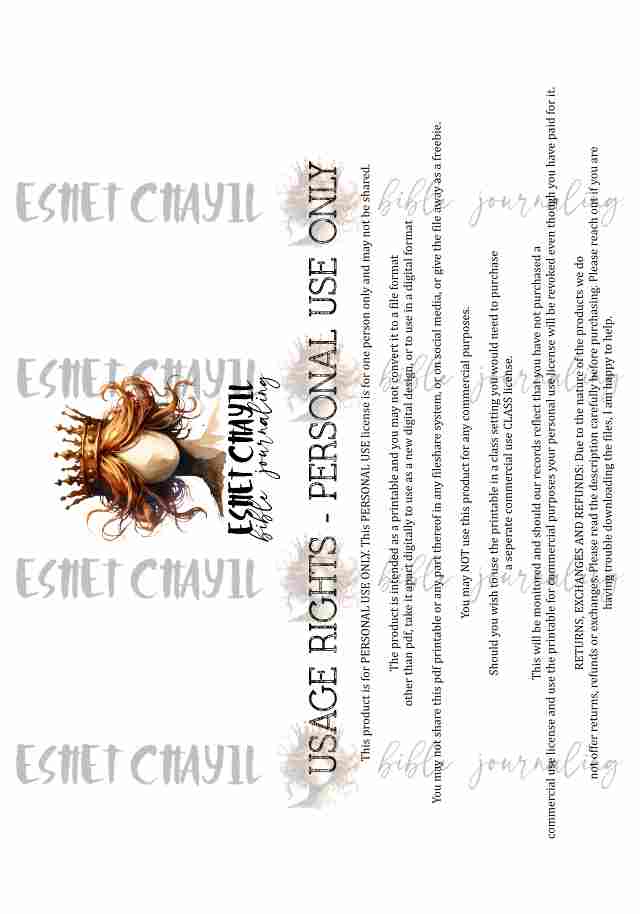This bible journaling printable consists of a 5 page pdf and can be printed up to A4 sized at 300dpi. Perfect for bible journaling in a journaling bible or using in your Scrapbooking or Junk Journaling projects.