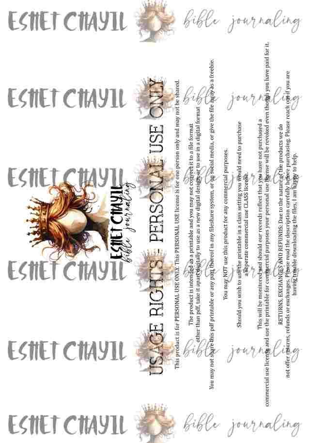 This bible journaling printable consists of a 4 page pdf and can be printed up to A4 sized at 300dpi. Perfect for bible journaling in a journaling bible or using in your Scrapbooking or Junk Journaling projects.