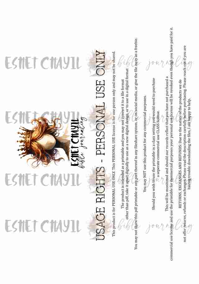 This bible journaling printable consists of a 4 page pdf and can be printed up to A4 sized at 300dpi. Perfect for bible journaling in a journaling bible or using in your Scrapbooking or Junk Journaling projects.