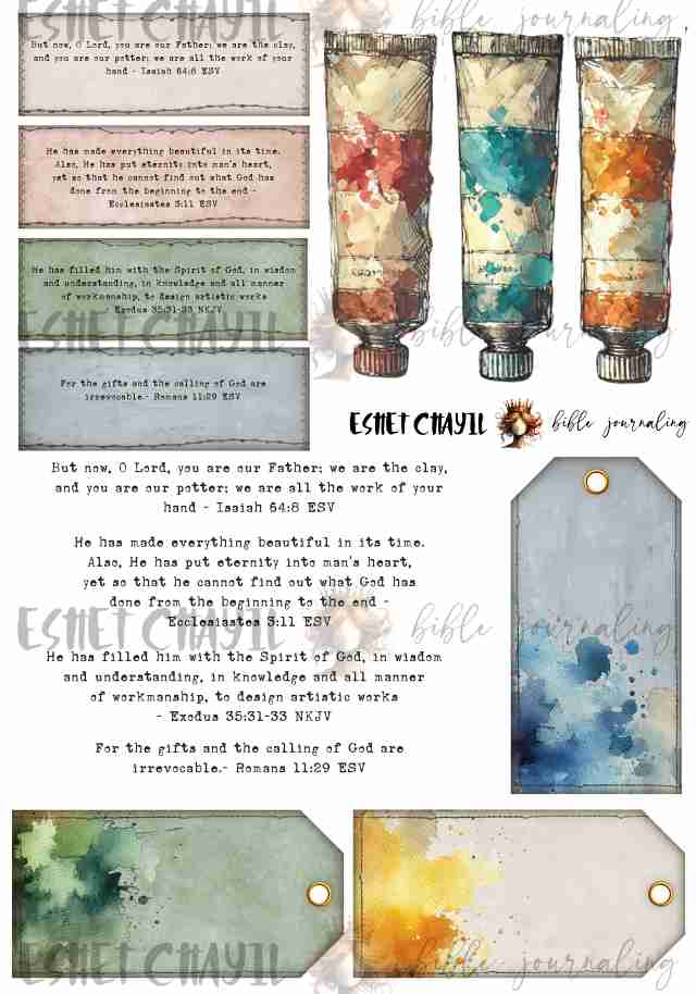 This bible journaling printable consists of a 5 page pdf and can be printed up to A4 sized at 300dpi. Perfect for bible journaling in a journaling bible or using in your Scrapbooking or Junk Journaling projects.
